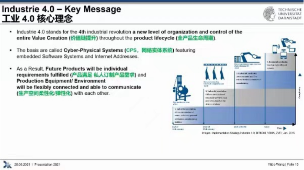 During the lecture, Dr. Wang introduced the core idea of Germany Industry 4.0 in detail, including value chain improvement, full product life cycle, CPS, private customization and flexibility of production space.