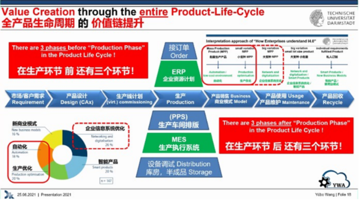 Dr. Wang showed the value chain development diagram of the whole product life cycle, and the main target of Industry 4.0 is to improve the value chain of the product life cycle.