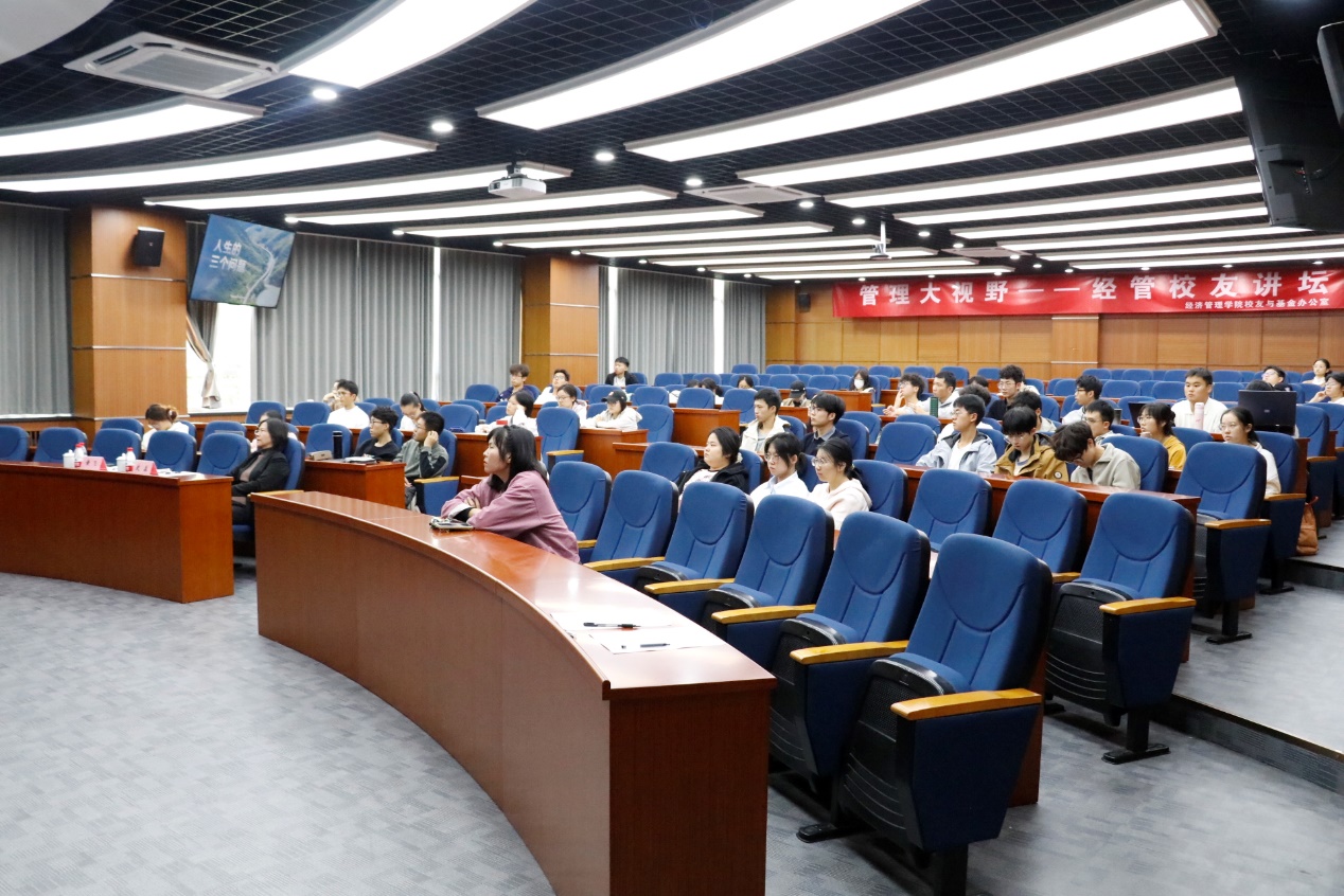 讲座最后,武森书记代表学院向黄飞校友的精彩分享致以诚挚谢意。她表示,本次讲座内容丰富、见解深刻,令在场师生深受启发、获益良多。她谈到,“管理大视野——经管校友讲坛”作为学院品牌活动,将持续发挥桥梁纽带作用,汇聚优秀校友资源,分享前沿洞见,促进校友与在校学生的深度交流。她欢迎广大师生校友持续关注讲坛动态,也期待更多校友常回母校,共话成长,共谋发展。