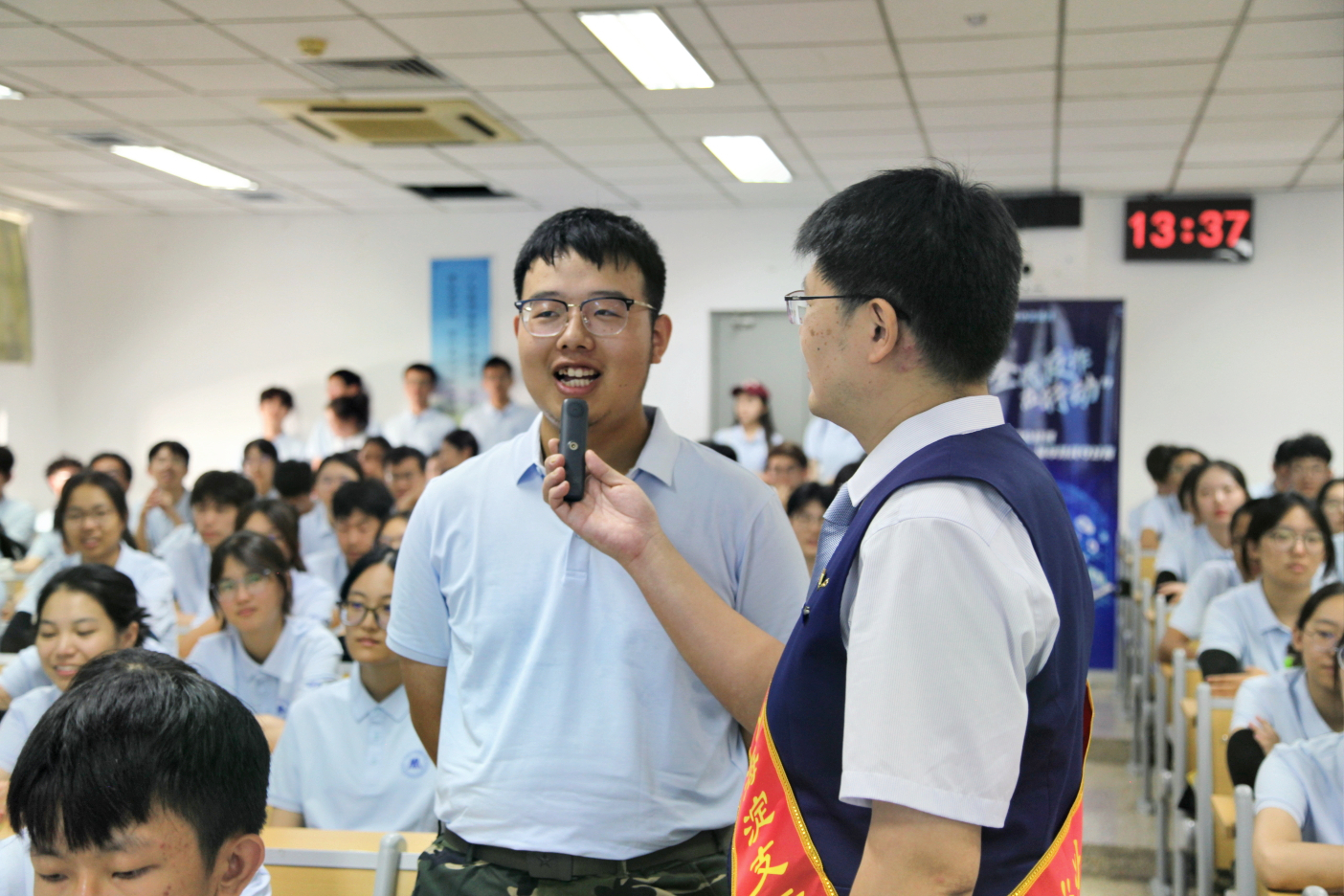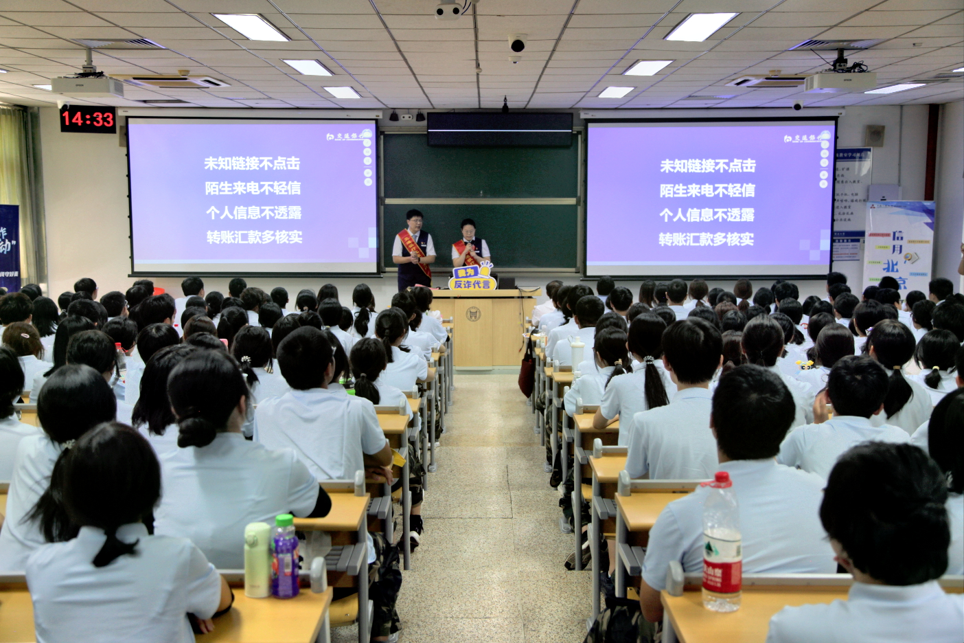主讲人表示,随着AI操控、虚拟号码等技术的出现,诈骗手段不断升级换代,同学们务必提高警惕,做到不轻信陌生人信息、不随意透露个人隐私、不盲目进行转账操作。他特别强调,要及时下载国家反诈中心APP并接听96110反诈专线,充分利用技术手段增强自我防护能力。