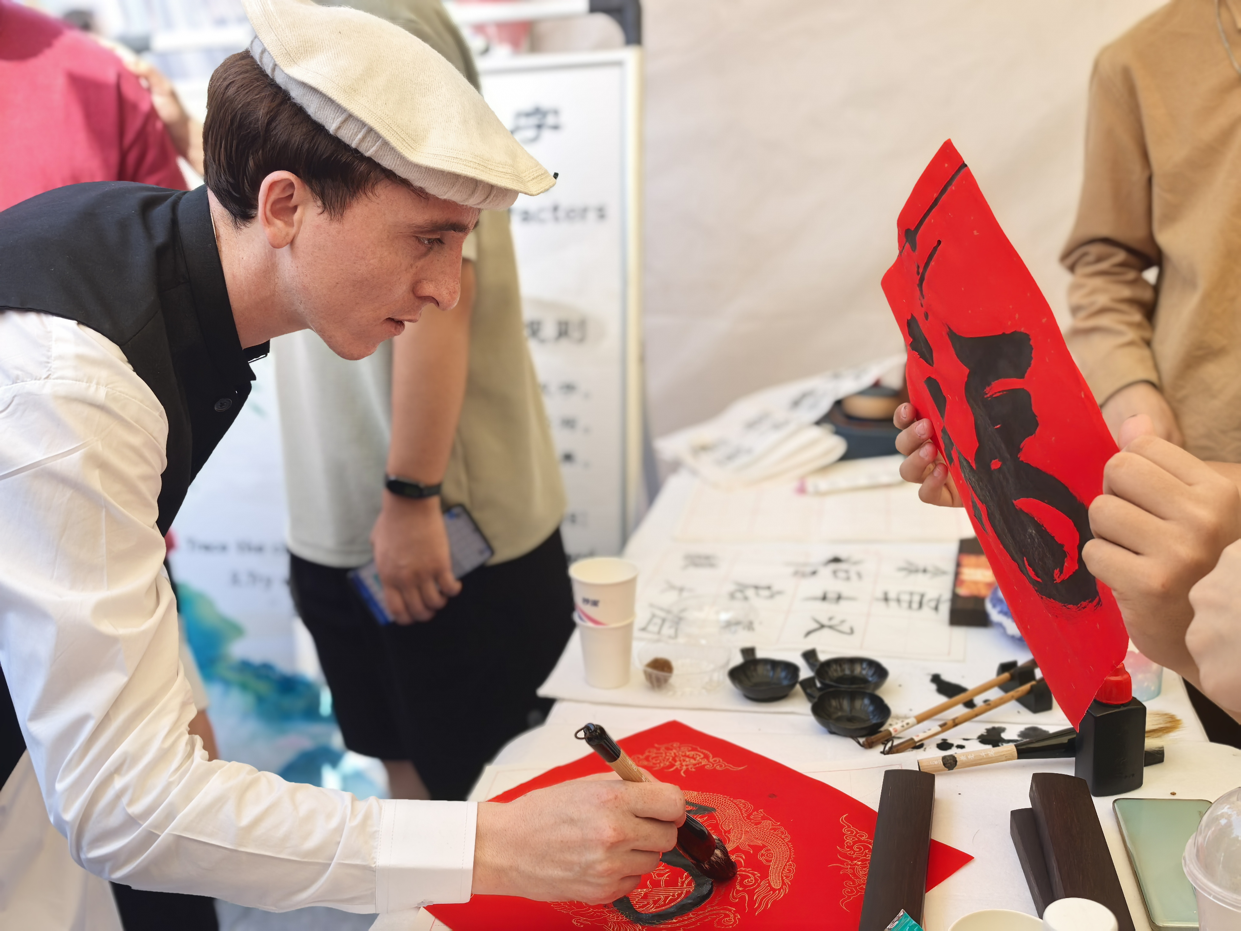 “诗韵节俗”环节中,参与者手持印有古典诗词的卡片,从多张图片里找出对应传统节日场景,在诗画匹配间读懂节日文化内涵;“墨韵汉字”环节,中外学生对照临摹参考图,写下一个个各具特色的“福”字,在一笔一划中感受楷书汉字的笔画美感;“诗语拾趣”则以主题问答形式,参与者围绕“描写春天”“包含月亮”等主题回答诗句。