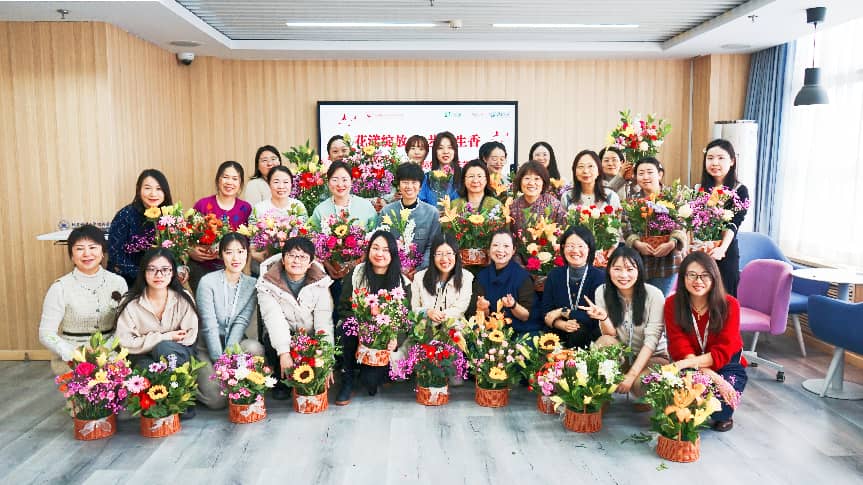 女教职工们暂别繁忙的工作,在馥郁花香中开启了一场与美的对话。修剪枝叶、搭配色彩、构思造型,平日里严谨治学的她们,此刻化身为生活的艺术家。一枝枝鲜花在指尖流转,逐渐编织成独具匠心的花束作品——或清新淡雅,或热烈奔放,恰如每位女性独一无二的魅力。