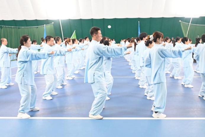 学院高度重视此次活动,利用午休时间组织集体练习,参赛教师们认真投入训练,反复打磨动作,将八段锦“柔和缓慢、圆活连贯”的要领融入每一式练习中。比赛中,全体队员动作整齐划一,神态从容舒展,将整套功法演绎的流畅自然。