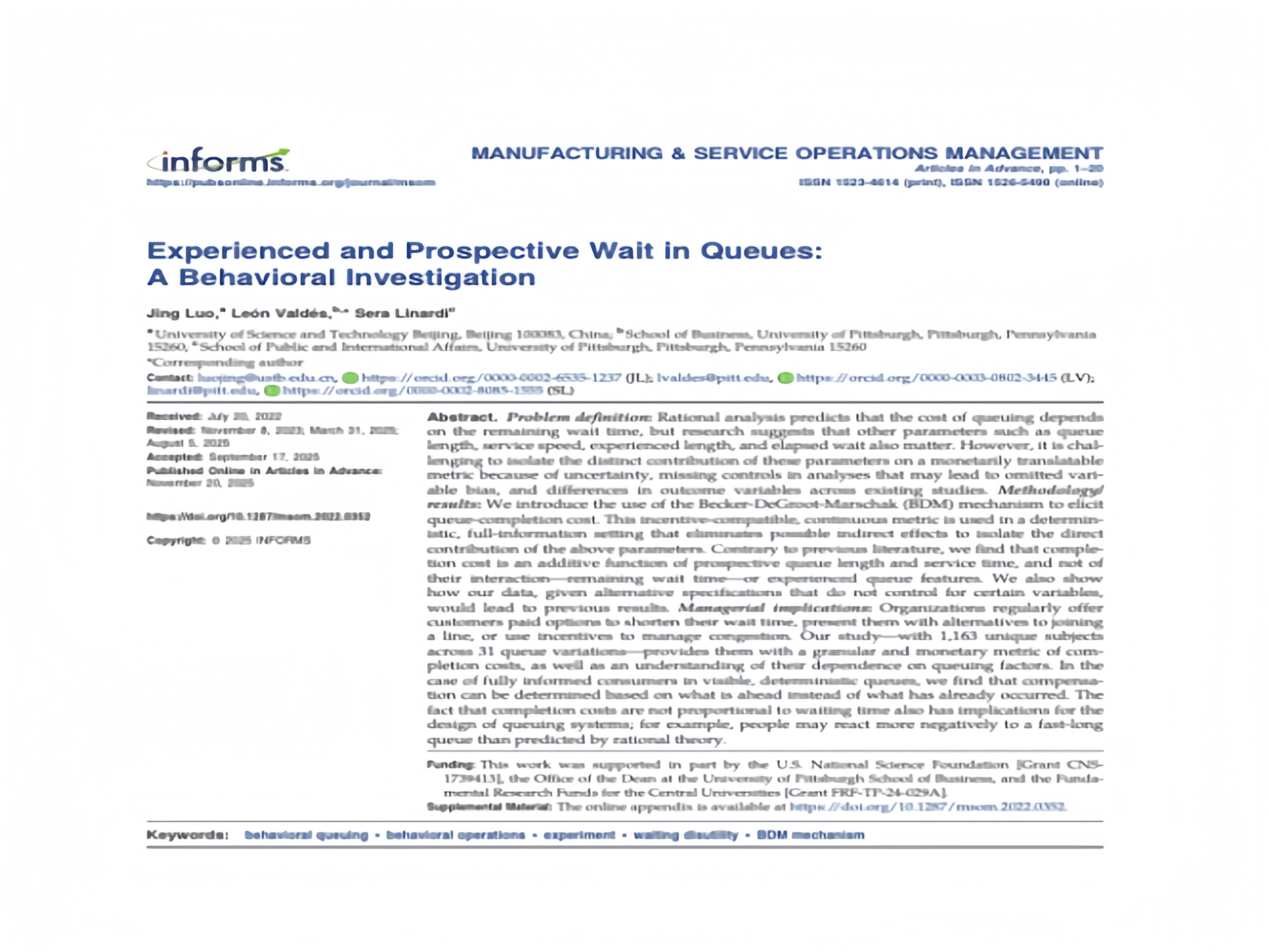 我院教师骆靖在UTD24列表期刊 Manufacturing & Service Operations Management发表最新研究成果